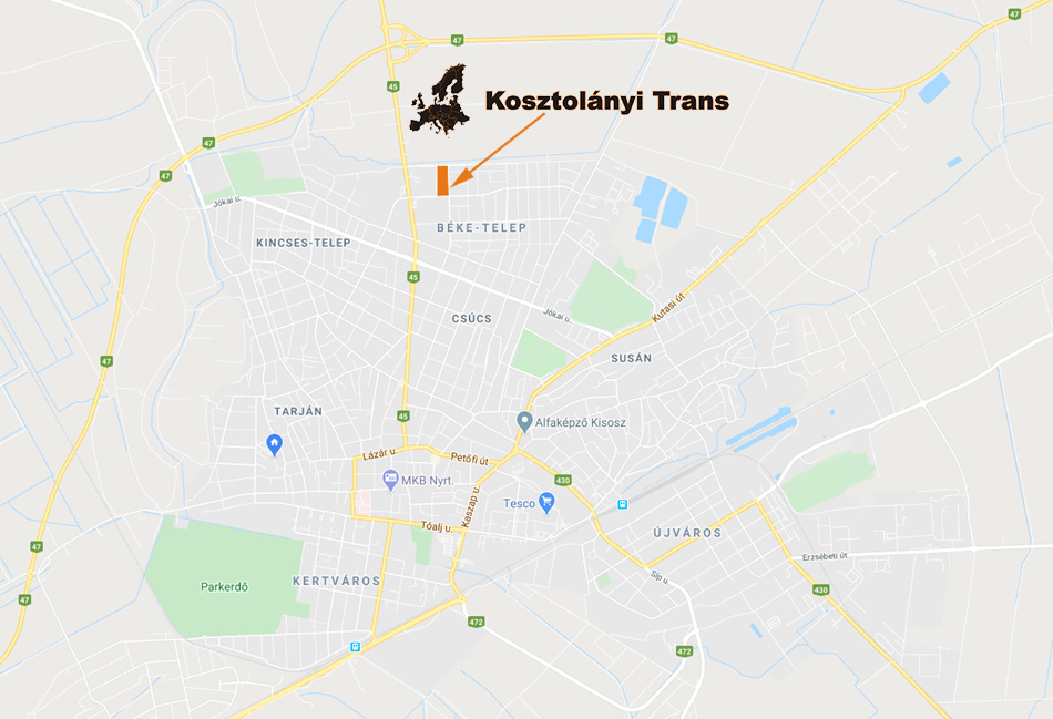 Örömmel üdvözöljük honlapunkon! Oldalunkon megtalál minden olyan információt, amely segít Önnek kapcsolatot teremteni cégünkkel. Fő szakterületünk a nemzetközi és belföldi árufuvarozás illetve raktározás és logisztika. További információkért keressen bennünket, illetve válasszon weboldalunk menüpontjai közül. Kosztolányi Zsolt +36 (20) 989-10-91 Kosztolányi György +36 (30) 259-05-63 |